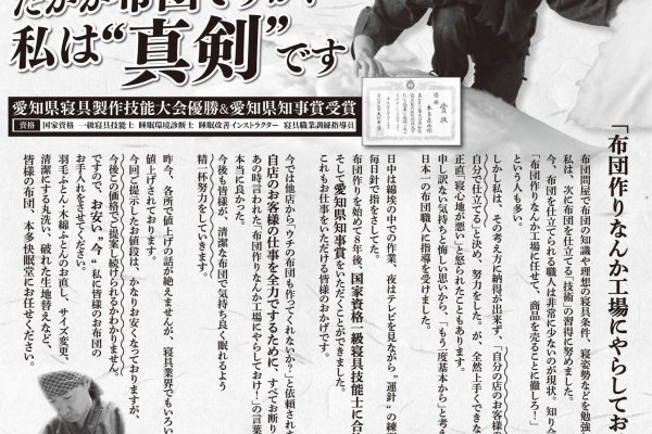 皆さん、お布団や眠りの悩み、本多快眠堂に相談してくださいね。