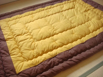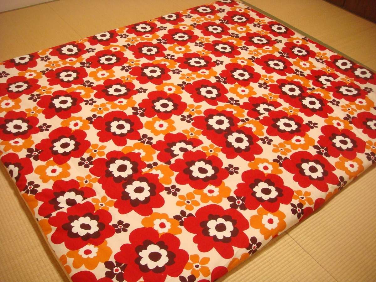 最近の売られているこたつ布団のほとんどはポリエステル綿を入れて、機械で作ってるものがほとんど。