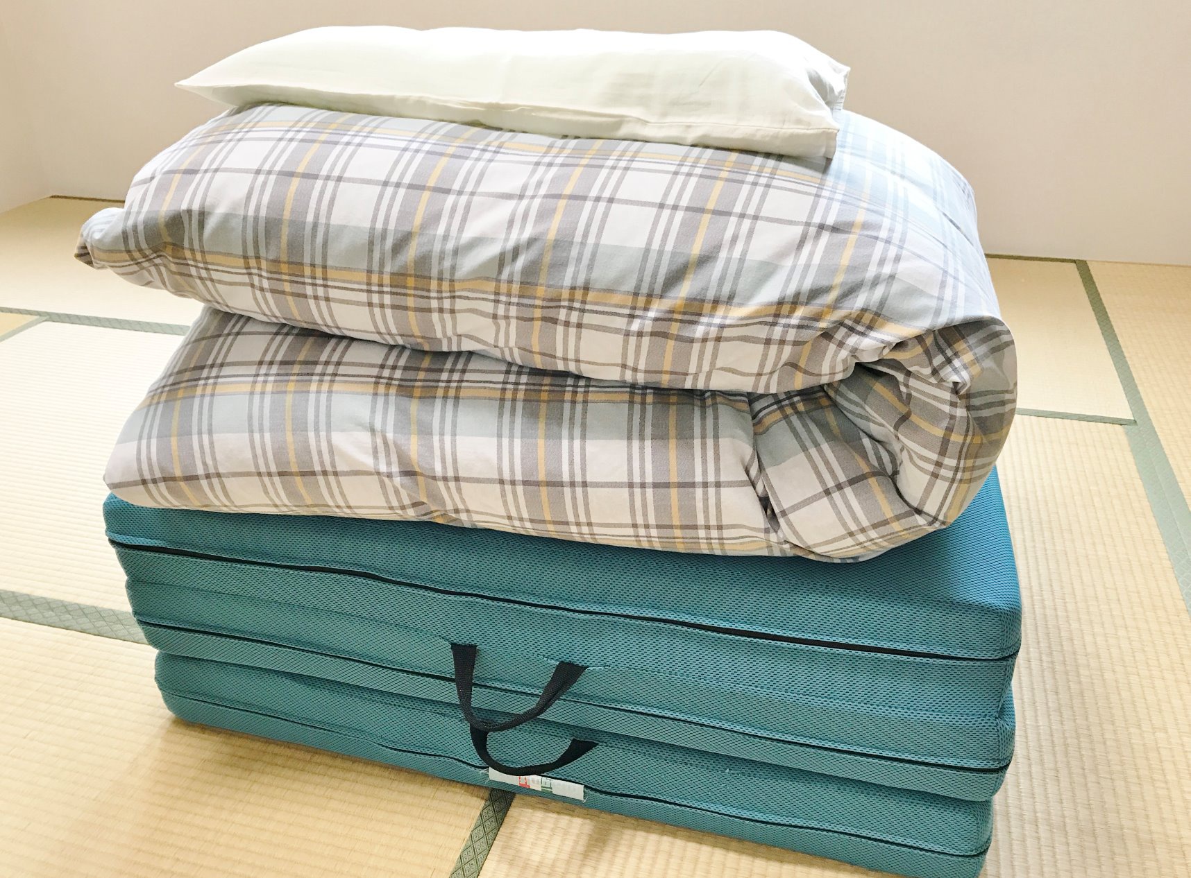 そんな時には収納場所もいらない、清潔な貸しふとんは大変便利です。1組から承ります。