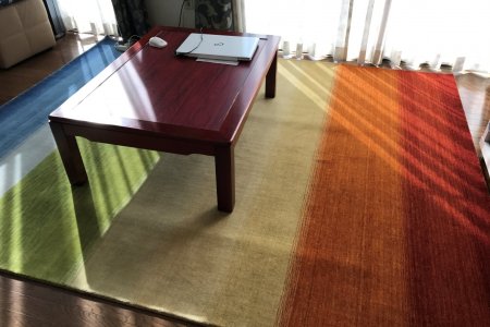 当時、私は自宅に敷くラグを探していたのですが、量販店で売っている物では満足できず、でもペルシャじゅうたんのような物は高くて買えない。柄も好みではないし・・・