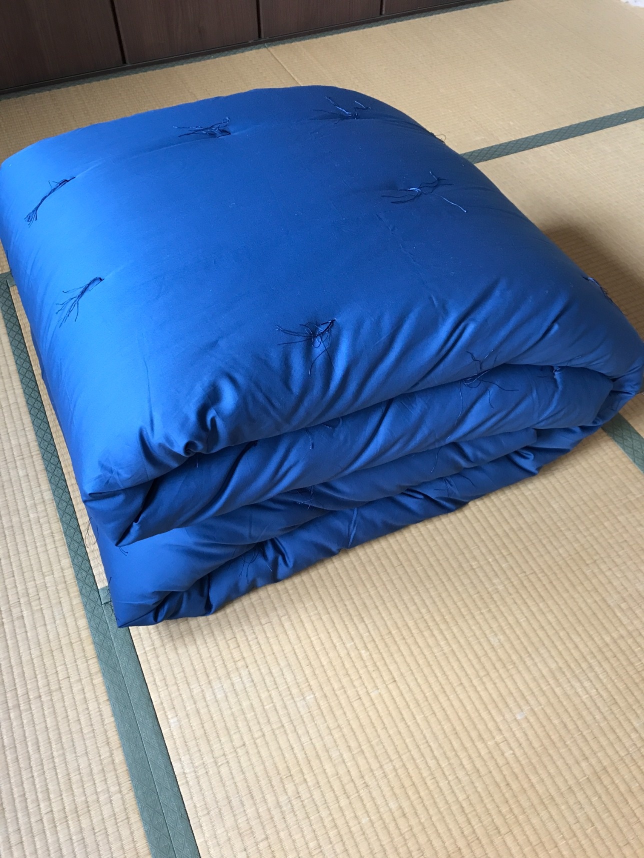 無地の紺色のお布団。