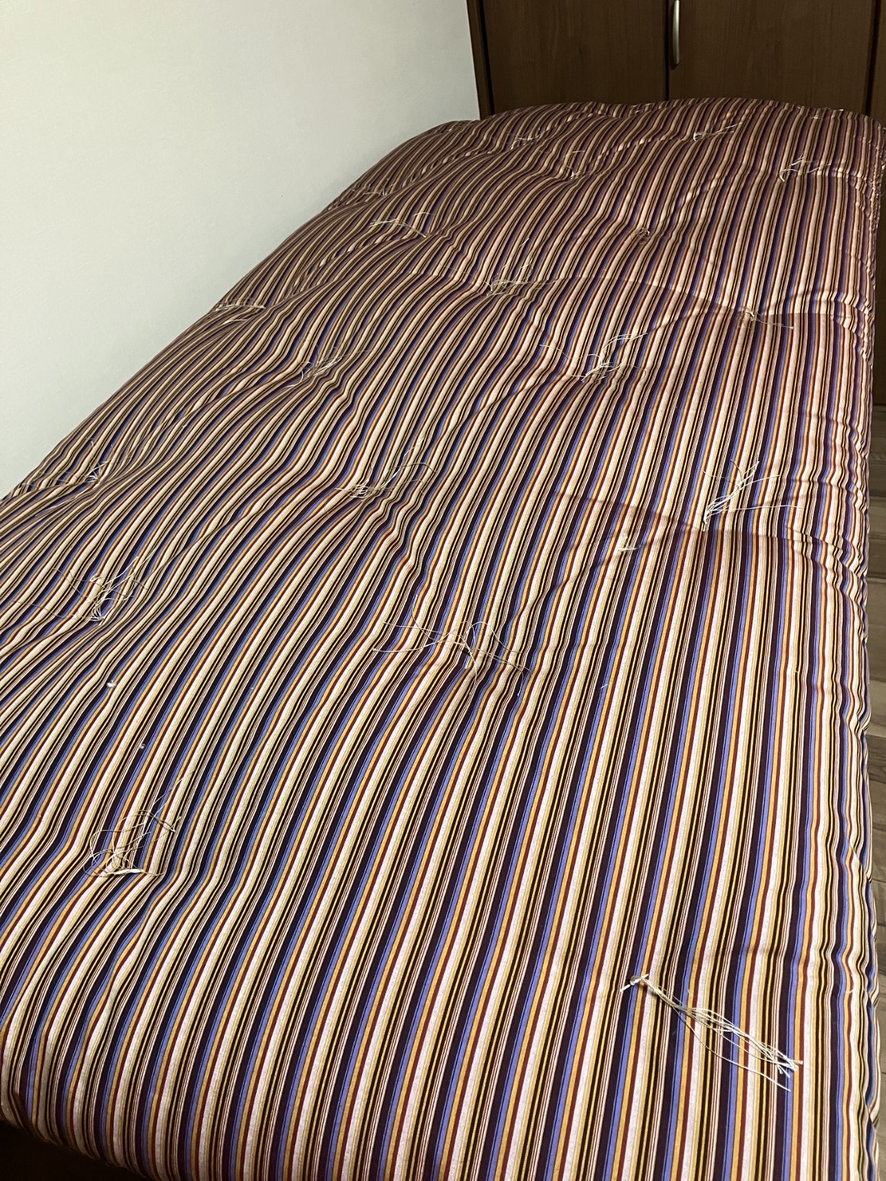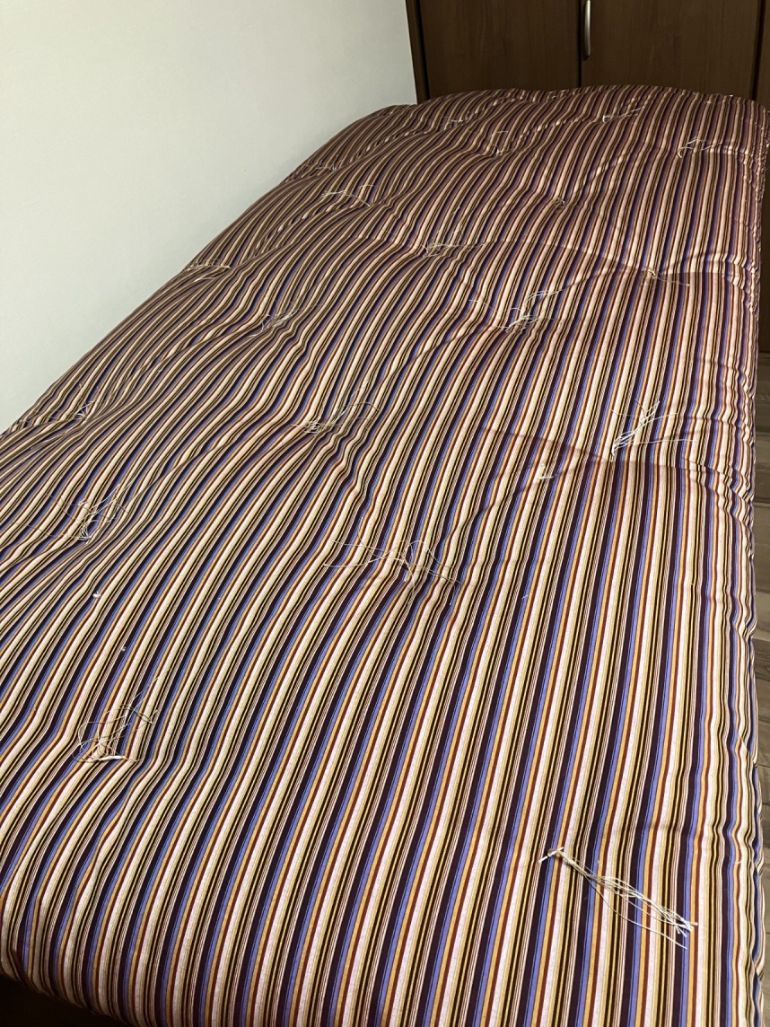 写真は、新しい木綿わたで仕立てた、『三河木綿』の生地を使ったお布団。