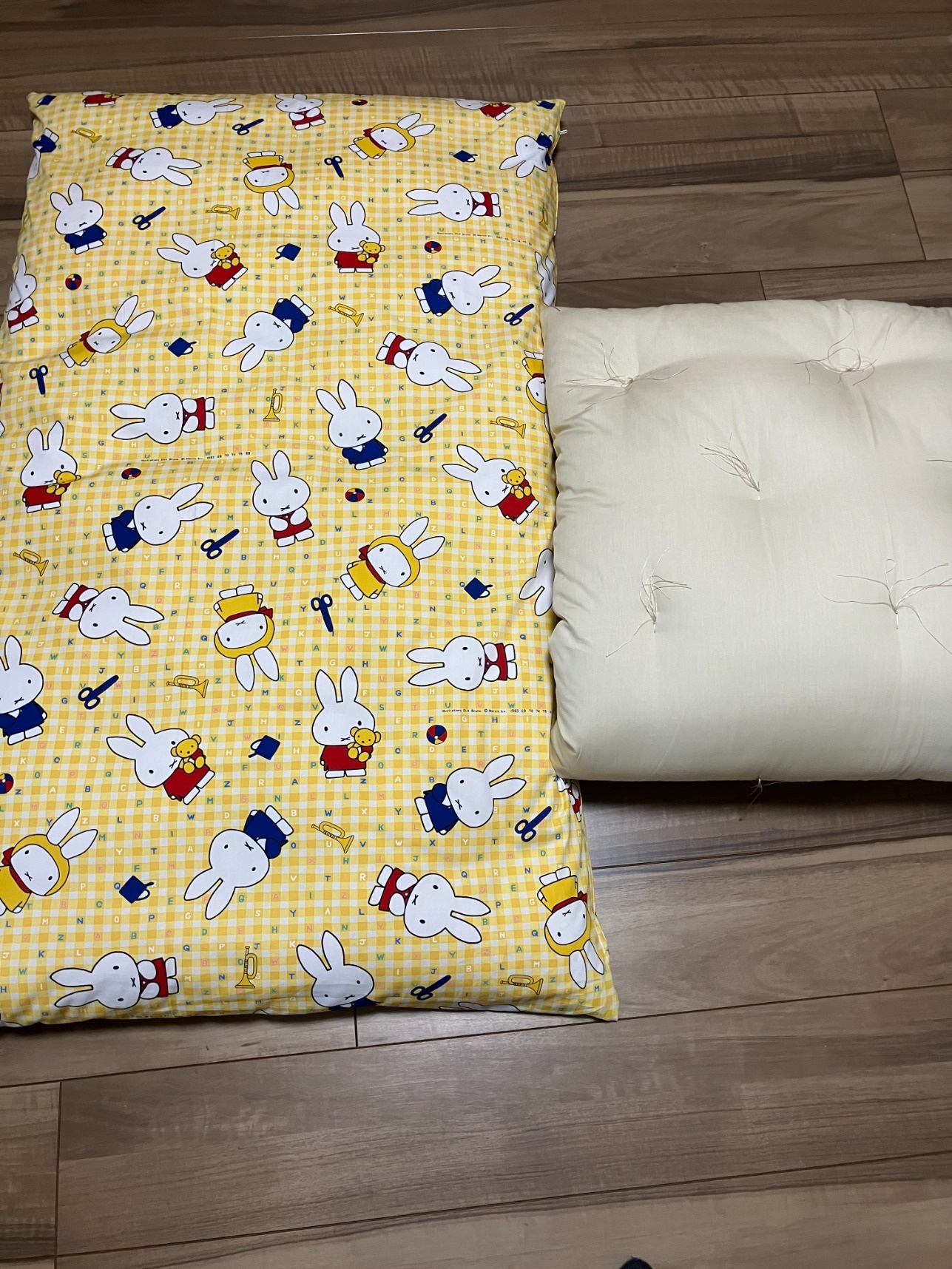 片方のお客様の布団は、かわいいミッフィーのカバー付き。
