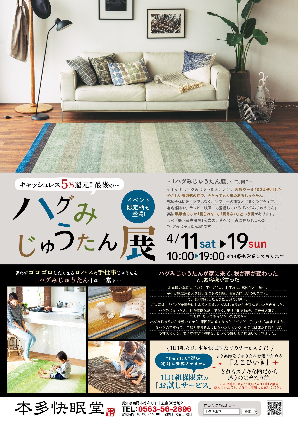 『田舎の布団屋』が開催する“ハグみじゅうたん展は、