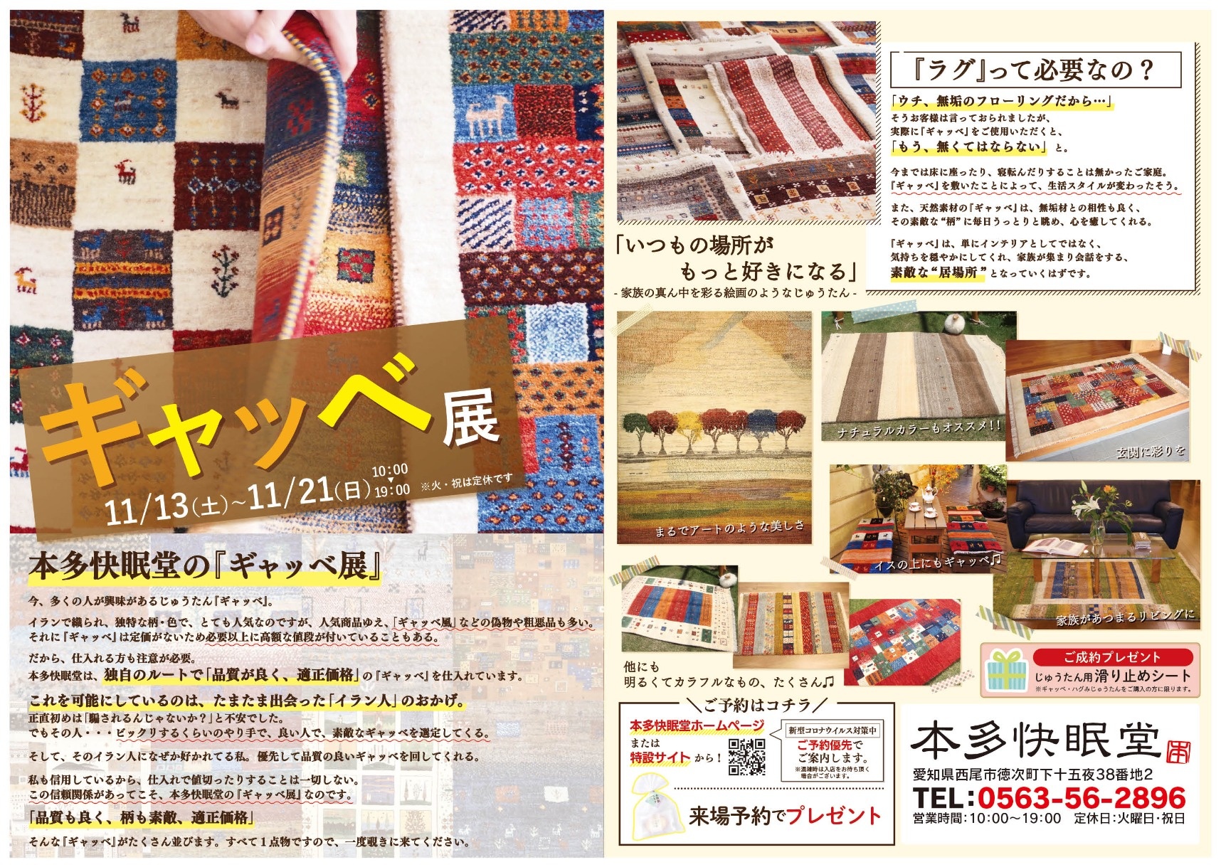 いよいよ ハグみじゅうたん展&ギャッベ展 開催です。