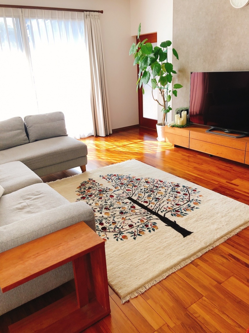 奥様がお選びになられた「ザクロの木」のギャッベ。