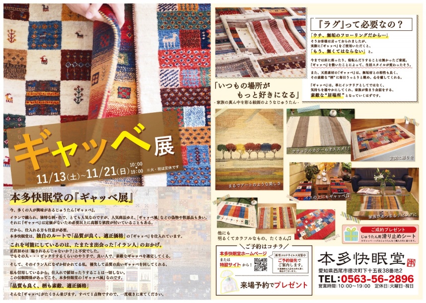 ギャッベ展&ハグみじゅうたん展 終盤!