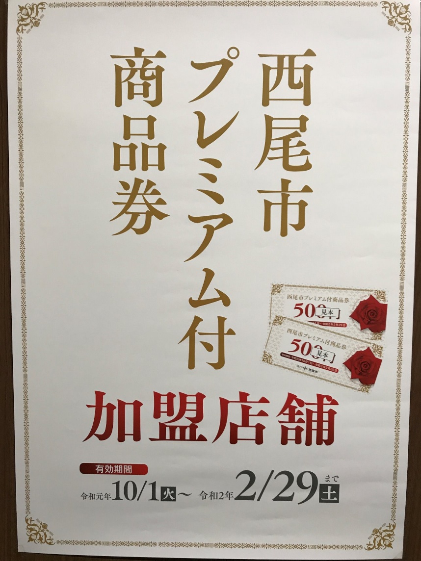 10月より西尾市プレミアム付商品券がご使用できます。