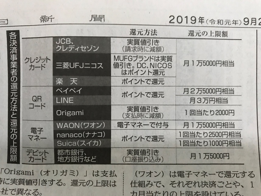 10月1日からキャッシュレス5%還元