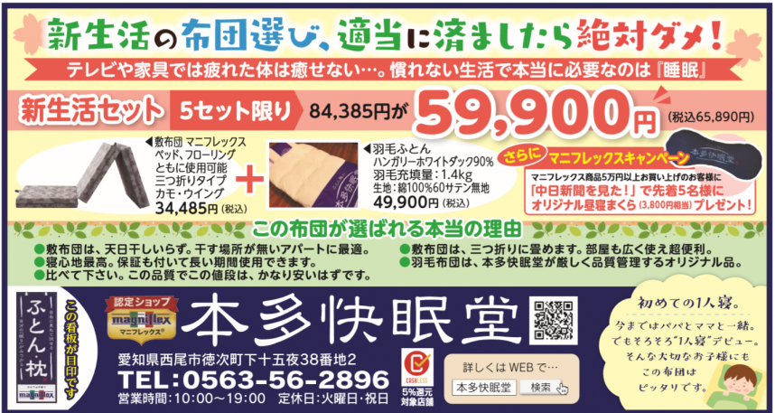 本多快眠堂の 新生活の布団 の広告が出ます。