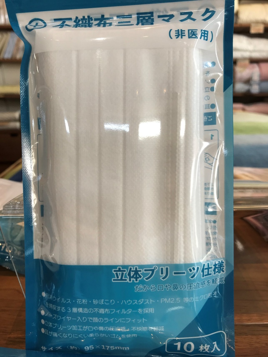 2020.05.02 NEWS マスク 入荷 マスク 入荷しました。 10枚一袋です。 これなら周りの人にも配りやすいよね。 1000枚限りです。無くなり次第終了。 地元の皆様のために、ここはお安くご提供。 10枚一袋 500円(税込み) 販売制限はしませんが、常識の範囲でお願いします。