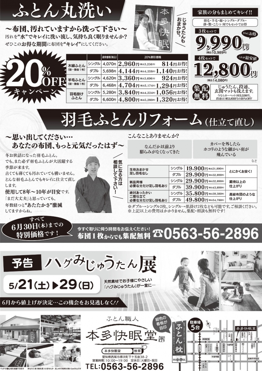本多快眠堂は、5月3日(火)4日(水)はお休みになります。
