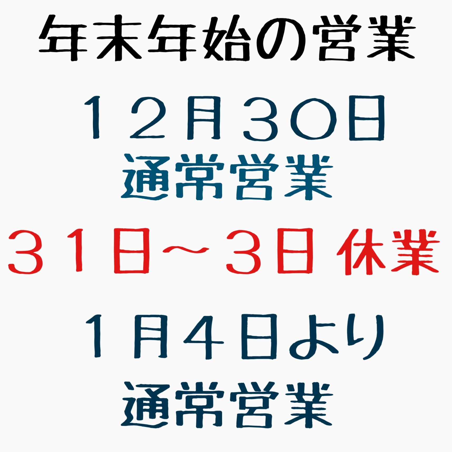 年内 12月30日(金)まで通常営業