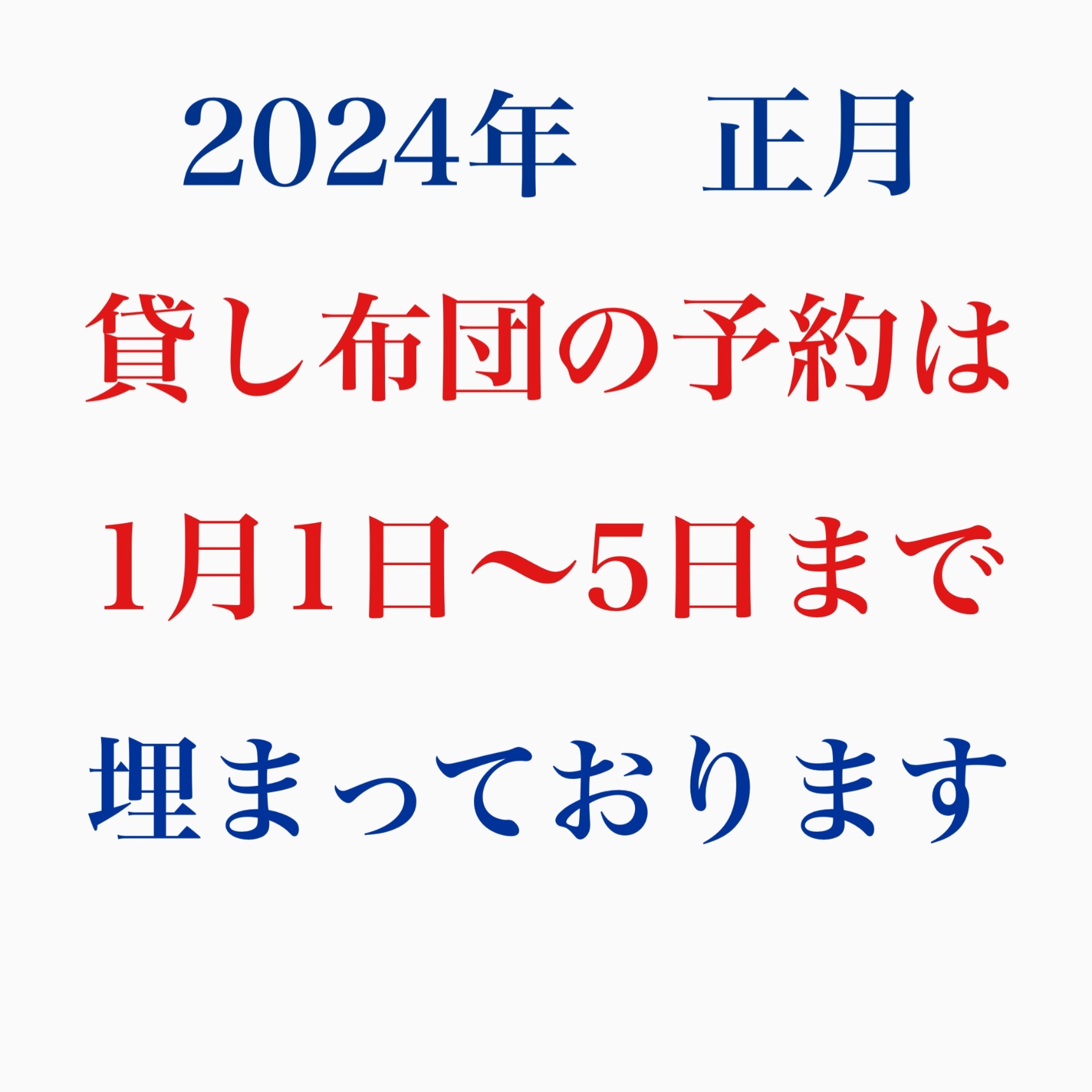 2024年 1月1日~5日までの貸布団ですが、