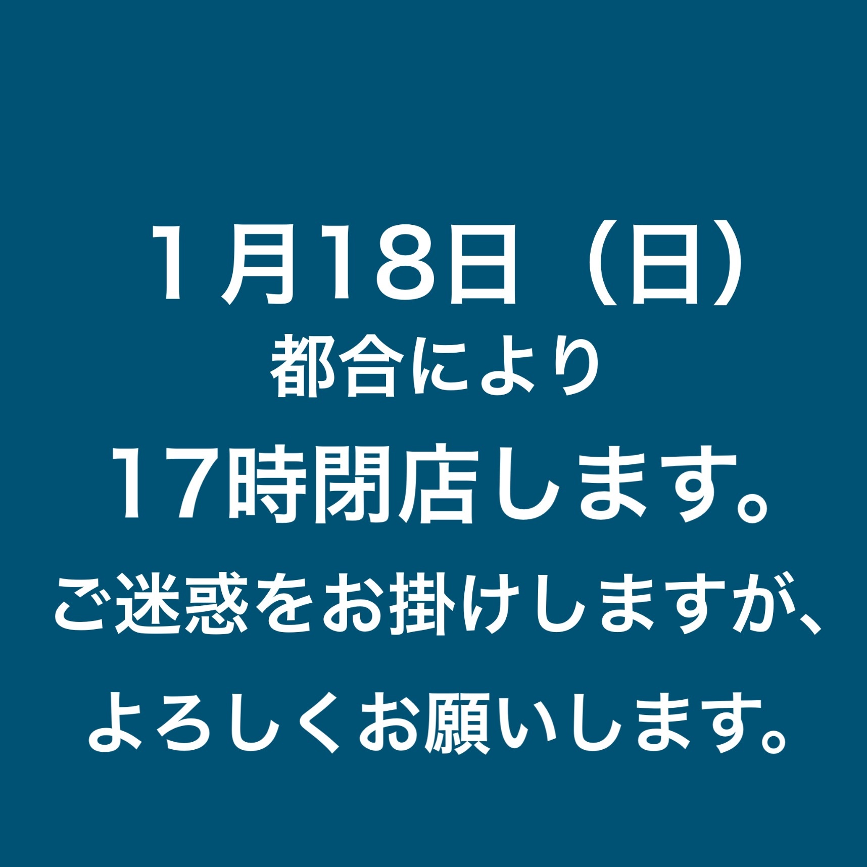 17時閉店とさせていただきます。