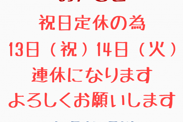 定休日のお知らせ