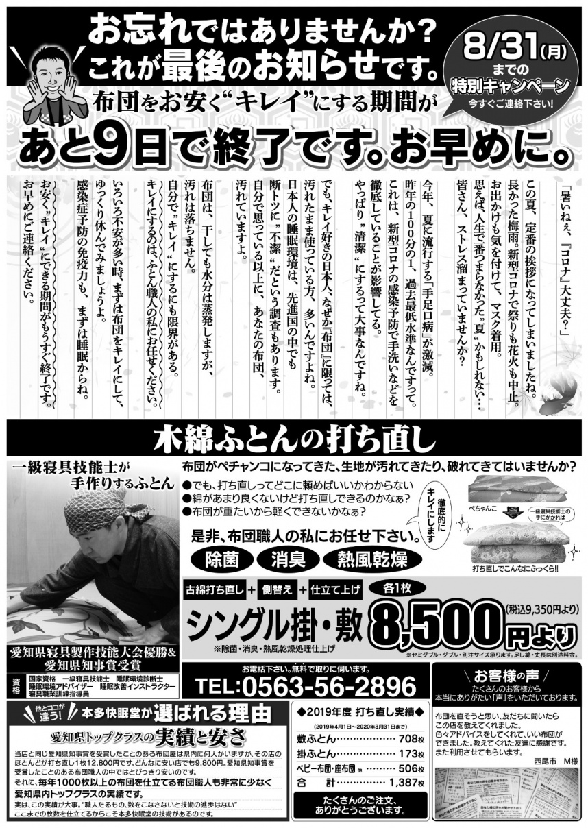 お安く布団をキレイにできる期間が終了します。