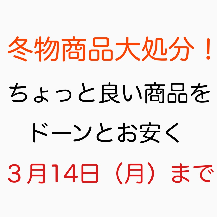 冬物商品かなりお得ですので、ぜひこの期間に購入してください。