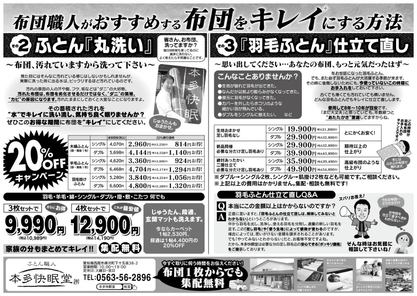 そろそろ、本多快眠堂のすっごいお得な期間、