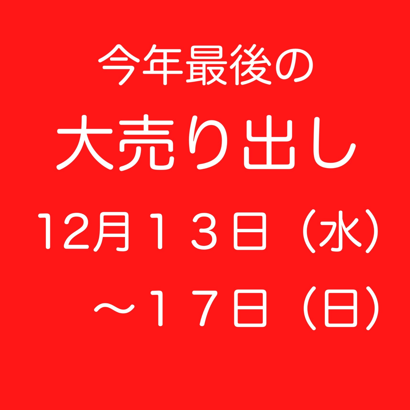 今年最後の大売り出しのご案内です。