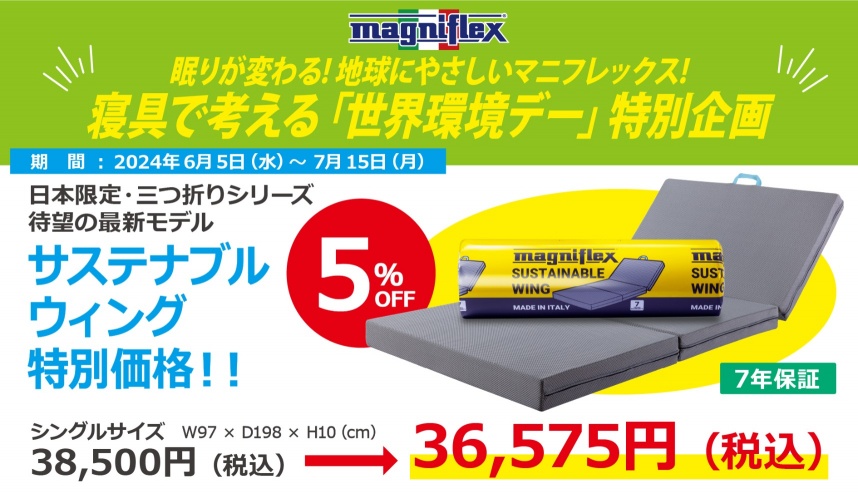 滅多にお安くしない、マニフレックスの敷布団をお安くご提供するキャンペーンです。