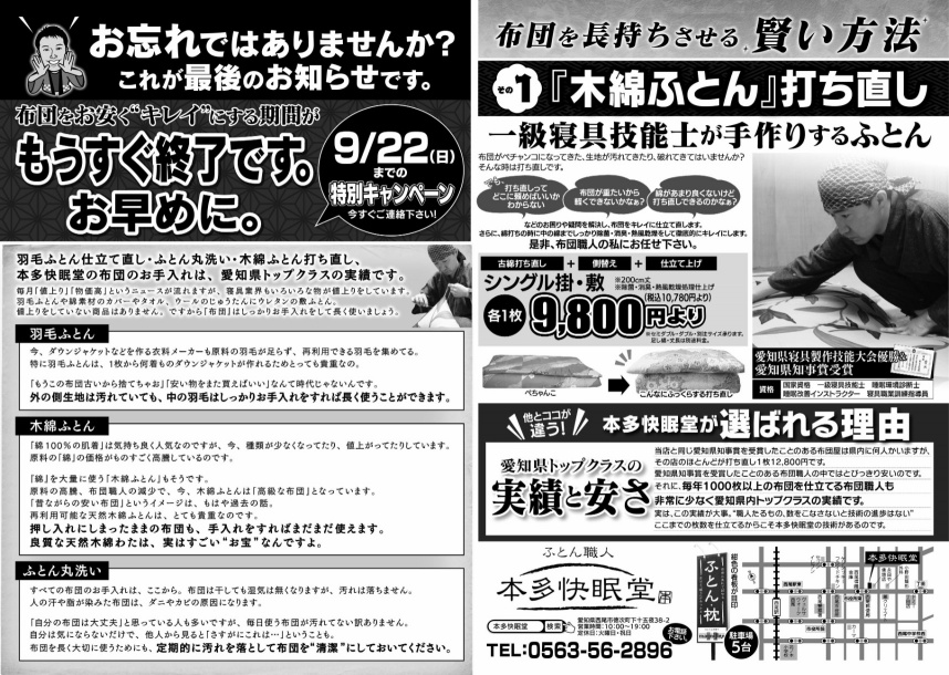 布団をお安く”キレイ”にできる期間が9月で終わっちゃいます。