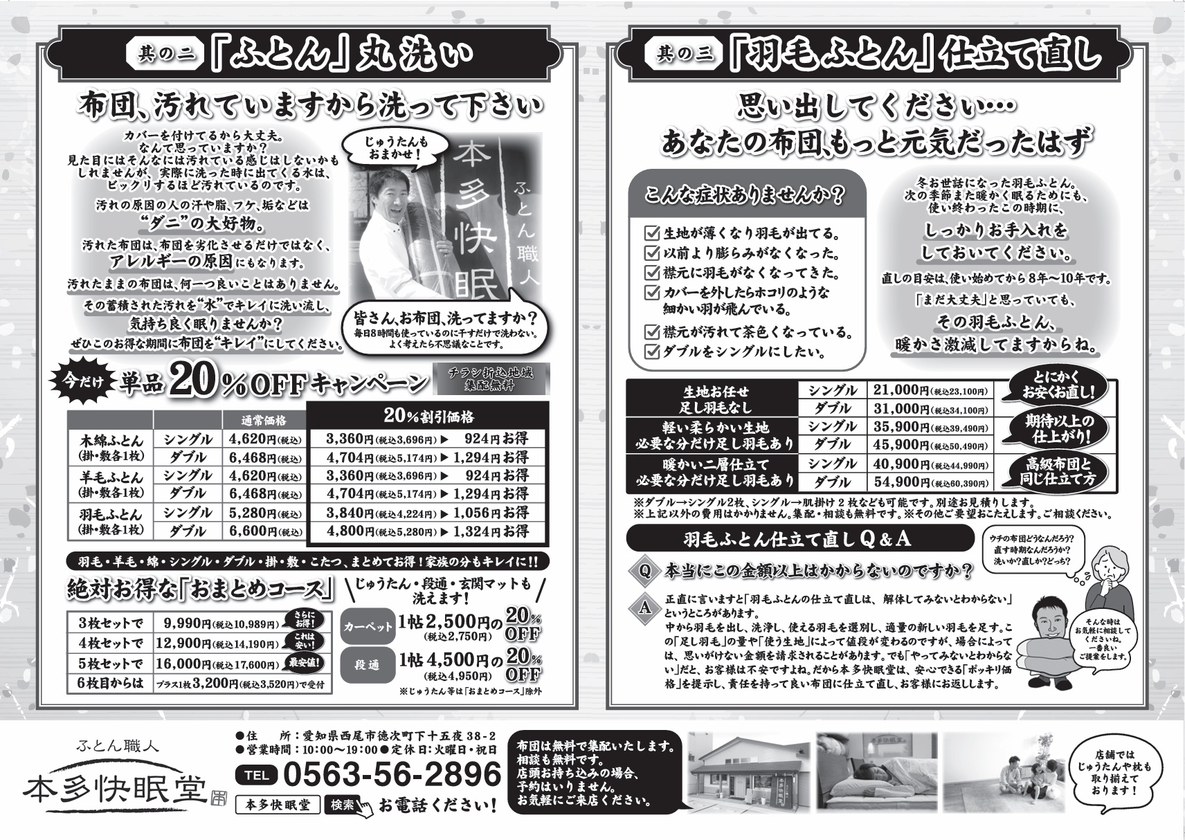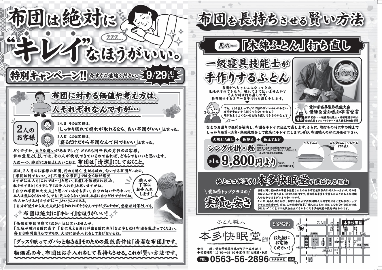本多快眠堂の、お布団”キレイ”キャンペーン、