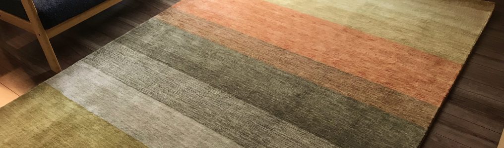 田園風景、虹、海などをモチーフに、日本の木の家に合うデザインし、海外のじゅうたん工房で1枚1枚手作業で織られてる。